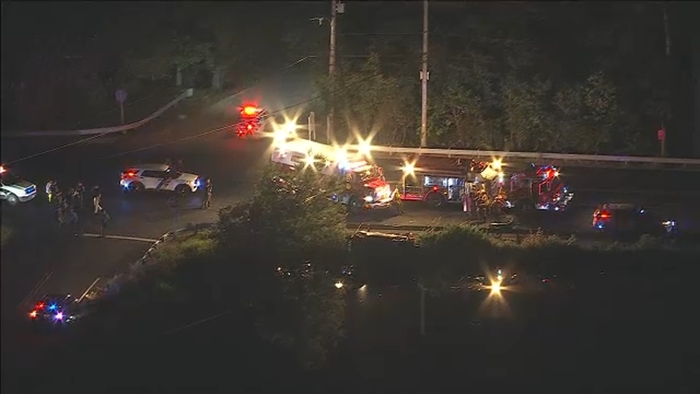 Two people were killed when their car ended up in a lake after colliding with a pickup truck in Burlington County, New Jersey.