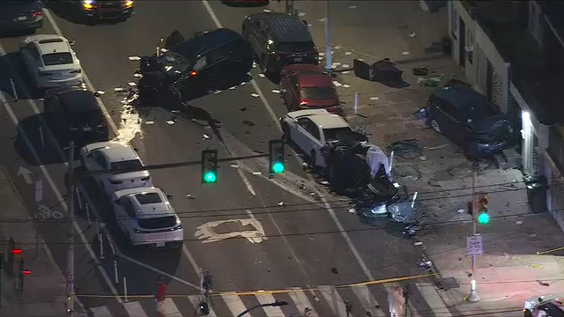 WEST PHILADELPHIA (WPVI) -- A crash involving at least four vehicles has left one person dead in West Philadelphia early Friday morning.