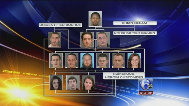 QUAKERTOWN, Pa. (WPVI) -- Authorities in Bucks County have announced 13 people have been charged in connection to a major heroin ring bust.