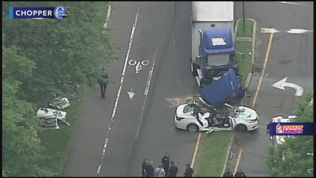 EVESHAM TWP, N.J. (WPVI) -- Two people are hospitalized after a crash between a tractor trailer and a car in Evesham Township, New Jersey.