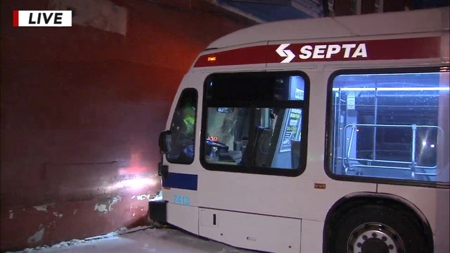 PHILADELPHIA (WPVI) -- An accordion-style SEPTA jackknifed and crashed into a home in North Philadelphia in one of a number of accidents that occurred during Monday morning's snowfall.