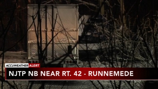 A tractor-trailer went down an embankment and crashed into a guardrail on the New Jersey Turnpike northbound near Route 42 near Runnemede. The driver was briefly trapped inside the truck, but was rescued by crews.