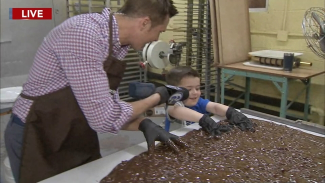 Watch the video as they prepare the candy for Easter, and Adam makes it a family affair on this adventure.