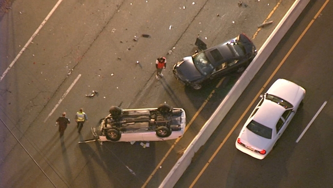 BURLINGTON TWP., N.J. (WPVI) -- A two-vehicle rollover crash shut down a busy South Jersey highway.