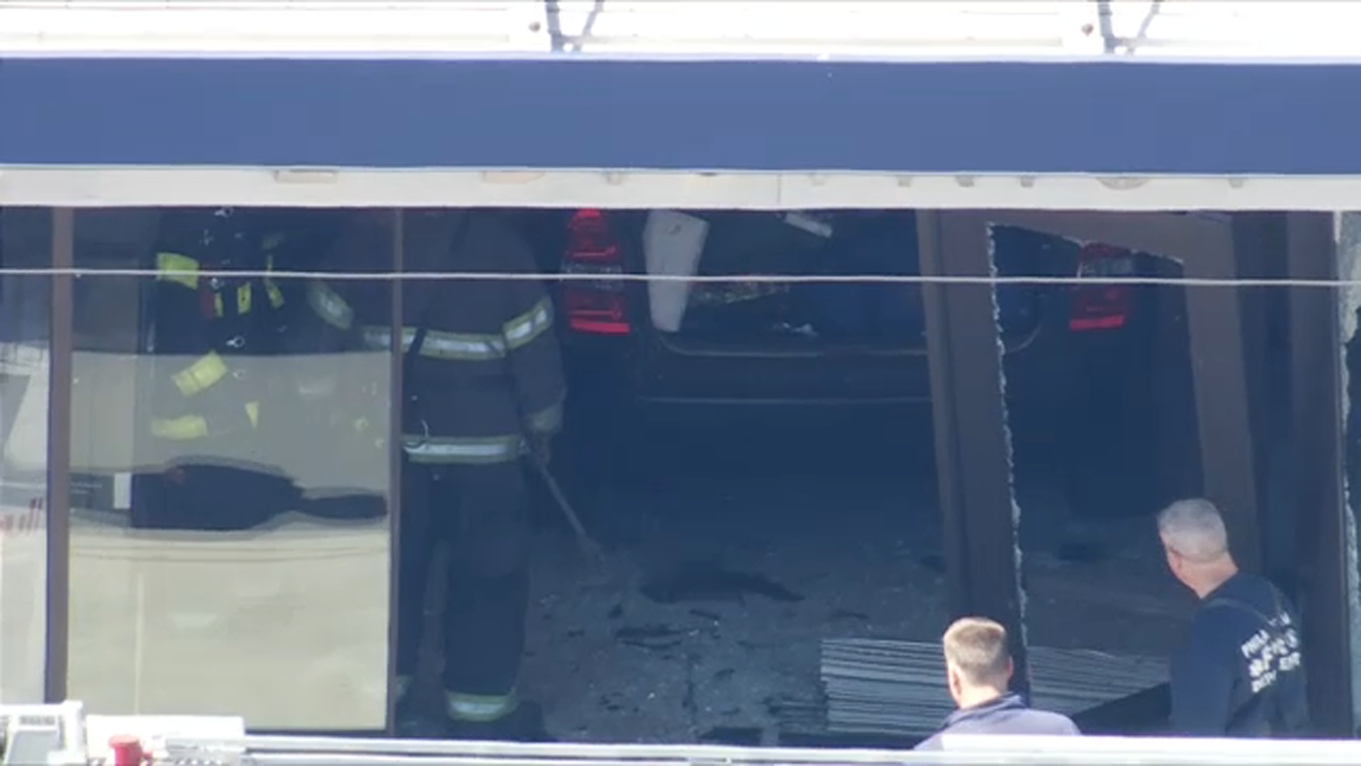 Video from the Action Cam and Chopper 6 showed the car stopped inside the building.