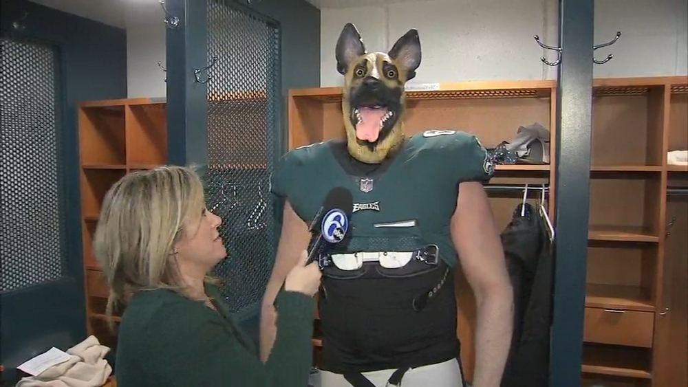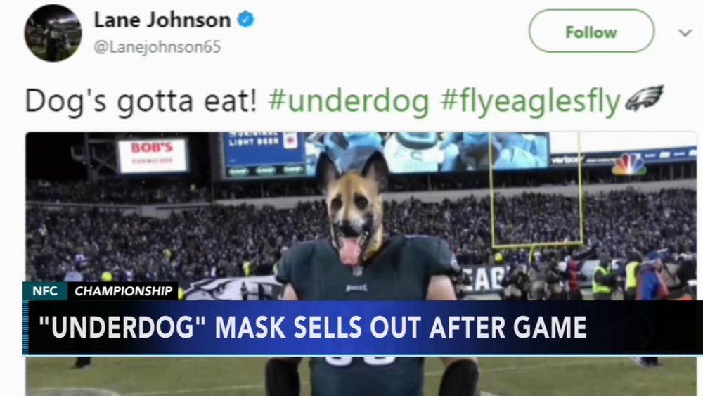 After right tackle Lane Johnson and defensive end Chris Long wore German Shepherd masks following the 'underdog' team's win over the Atlanta Falcons on Saturday, the masks became a hot commodity in Philly.