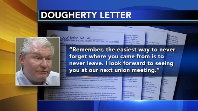 Dougherty, 58, leads the International Brotherhood of Electrical Workers Local 98, with 5,000 members, along with the city's Building Trades Council, an umbrella group with more than 70,000 members. He has been at the helm of the century-old electricians union for 25 years.