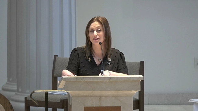 "Now my last remarks might seem strange, but I already spoke with Father Auletta and it's okay to say it back," she said, and then continued, "Go Birds."