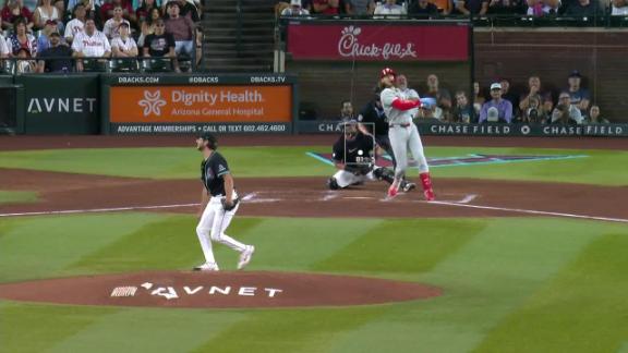 It took six pitches for the Phillies to take the lead. Harrison Bader had a four-pitch walk and Kyle Schwarber lined a double to left, scoring Bader easily. Schwarber later scored on J.T. Realmuto's deep sacrifice fly to center. Corbin Carroll and Ketel Marte drove in runs to tie the game.