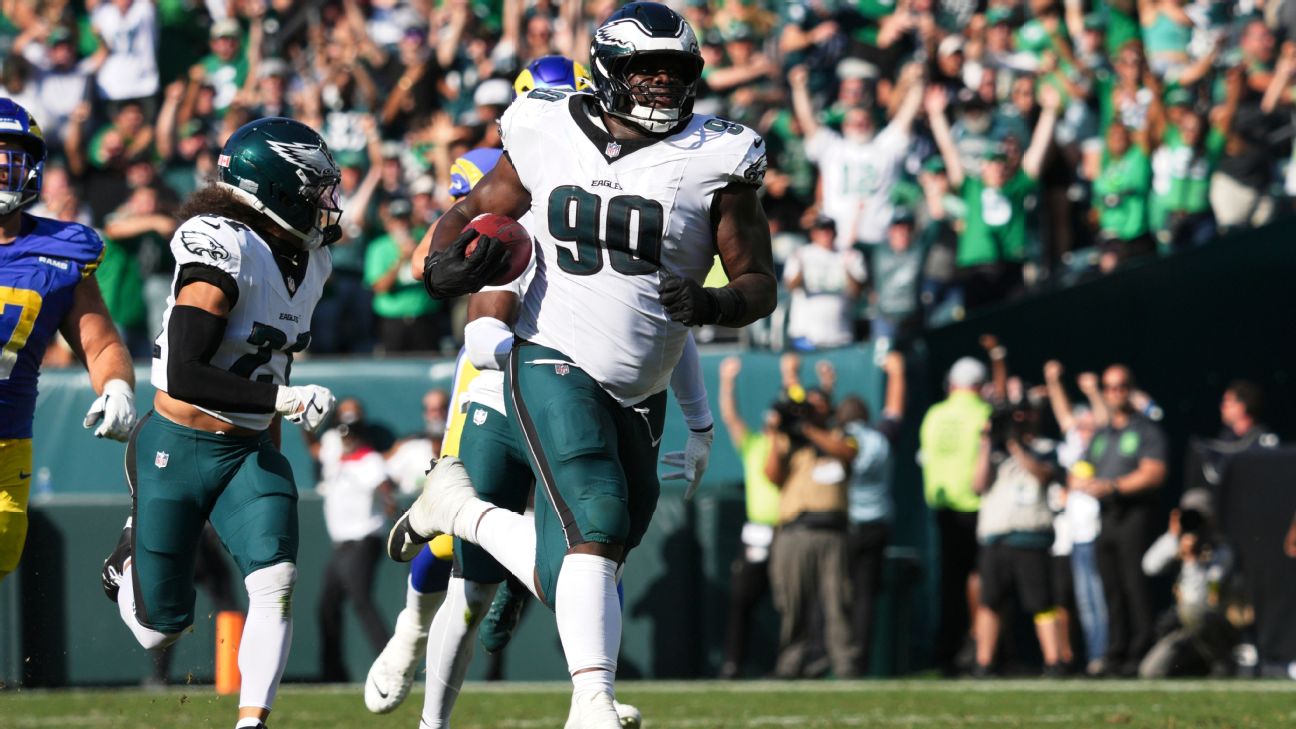 He added five tackles, a sack and a QB hit to help the Eagles improve to 3-0 while the Rams exited with a stinging loss that dropped them to 2-1.
