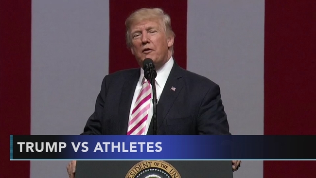 Wading into thorny issues of race and politics, Trump's comments in a Friday night speech and a series of Saturday tweets drew sharp responses from some of the nation's top athletes, with LeBron James calling the president a "bum." Hours later, Major League Baseball saw its first player take a knee during the national anthem.