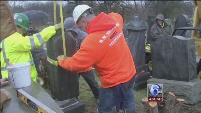 WISSINOMING (WPVI) -- Hundreds of vandalized headstones at Mount Carmel cemetery have been restored to their former glory thanks to the generosity of strangers, and the hard work of volunteers.