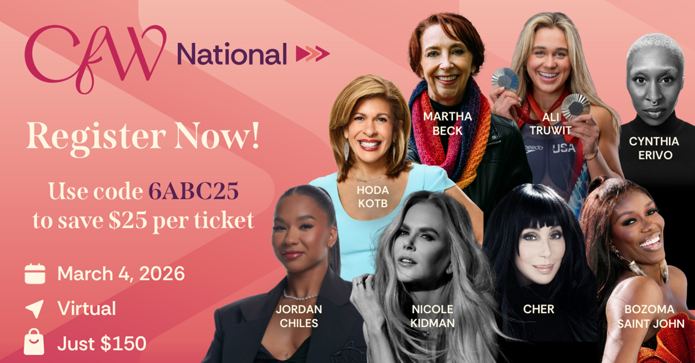 Plus, save $25 per ticket when you use the code 6ABC25! Join us at National Conference for Women, March 4th. Get your tickets.