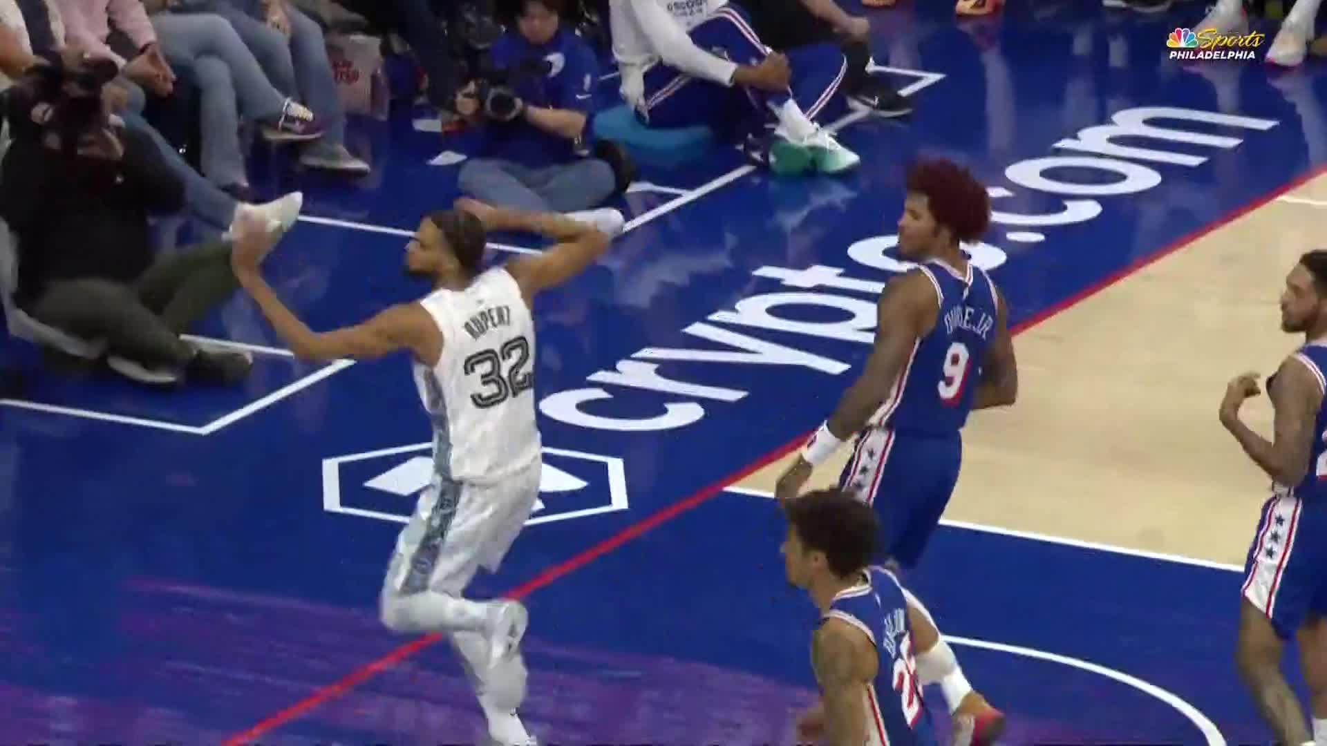 Edgecombe took over point guard duties for Maxey after missing three consecutive games with a lumbar contusion. He provided the game's highlight, showing his back is OK, with a two-handed, leaping dunk midway through the second quarter.