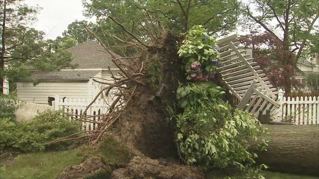 COLLINGSWOOD, N.J. (WPVI) -- A powerful line of storms brought down trees and power lines and caused damage in several communities across the region early Saturday.