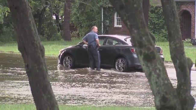 And in Lower Moreland, a car got stuck trying to drive into a flooded intersection at Philmont and Red Lion roads.