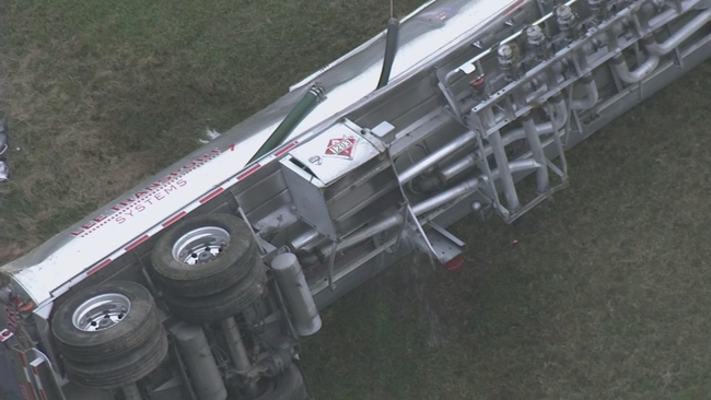 Video from Chopper 6 HD showed steady streams of gasoline pouring from parts of the ruptured tanker.