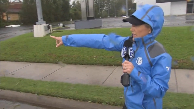 Throughout the day, the wind has been whipping and rain coming in waves. Trees are down on surrounding streets and parking lots, and roads are flooding out.