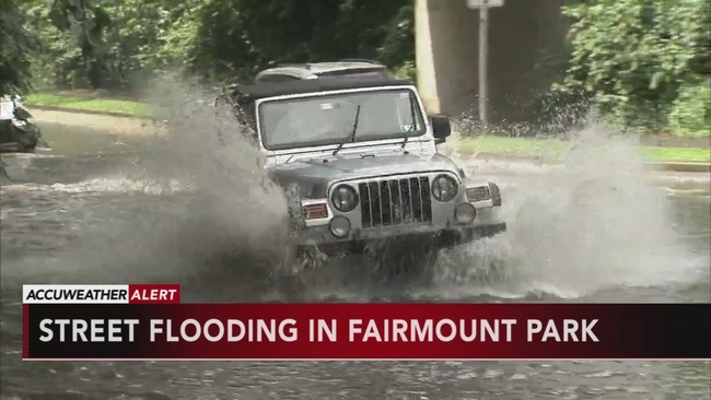 The slow-moving downpours caused flooding in the Fairmount Park section of Philadelphia. Standing water blocked the area of Sweetbriar and Lansdowne drives.