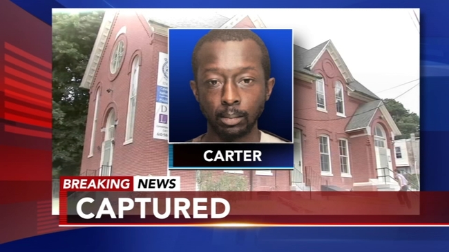 DARBY, Pa. (WPVI) -- Following an intense manhunt, police have arrested the man they say is responsible for injuring a Delaware County librarian while stealing money from the library.