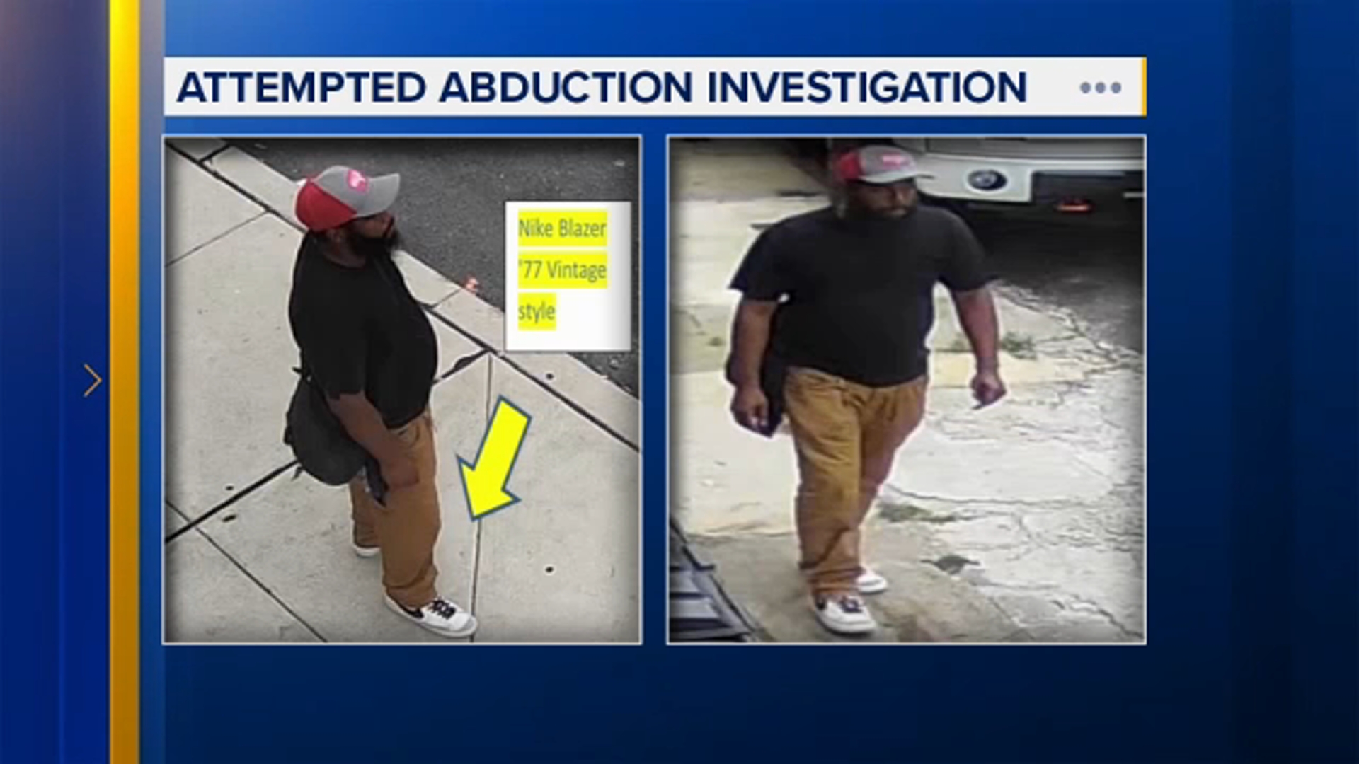 Surveillance images highlight the suspect's Nike Blazer '77 vintage style sneakers.