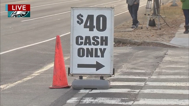 Philadelphia Eagles fans - and Minnesota Vikings fans, too - were allowed to begin their pregame festivities at FDR Park starting at 8 a.m. Sunday. A $40 cash sign was placed at the entrance shortly before the gates opened.