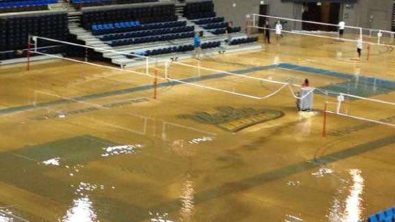 At one point, the arena had as much as 10 inches of water on the arena playing surface, said Kelly Schmader, assistant vice chancellor for facilities management.