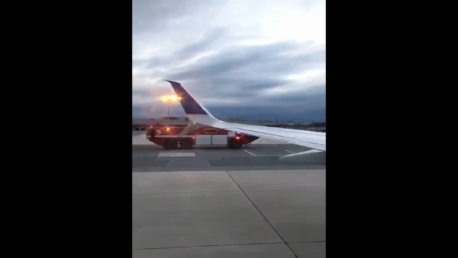 "Had an emergency landing in Delaware somewhere, a military base. No photos allowed once we get off the plane. Have to wait here for two hours and then get onto another plane," Faerman said.
