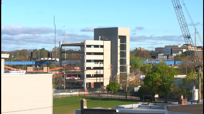 Demolition began early Saturday morning on a parking garage under construction that partially collapsed earlier this week.