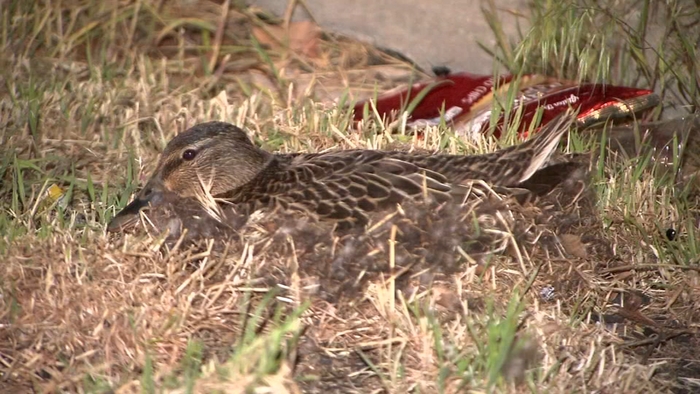 Mother duck gets community help for nest
