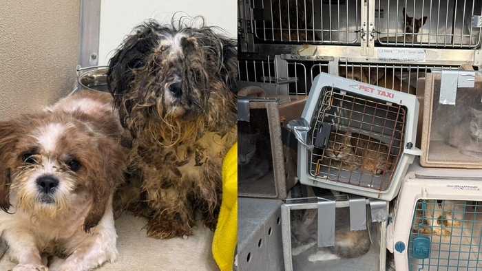 A total of 93 animals, including 76 dogs and puppies of various breeds, 15 cats and kittens, and two Flemish rabbits, were found living in deplorable conditions, according to officials.